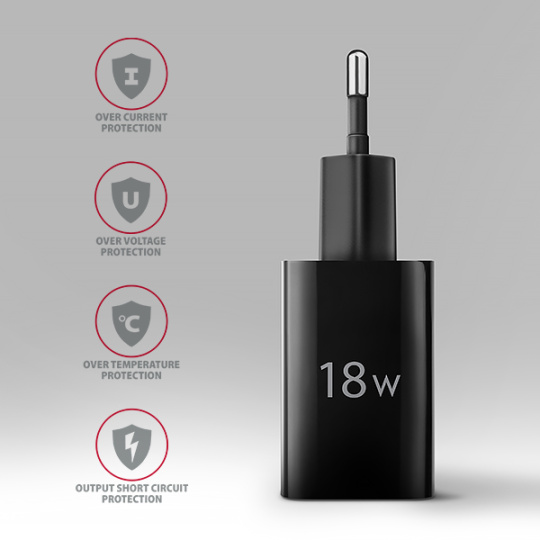 Nabíječka je vybavena výstupem Quick Charge 3.0 USB typu A, což umožňuje rychlé nabíjení smartphonů a tabletů výkonem až 18W. Adaptér je také kompatibilní s dalšími standardy rychlého nabíjení telefonů, jako jsou Apple iPhone, iPad, Samsung, Huawei, Honor, Xiaomi, Motorola a dalších.