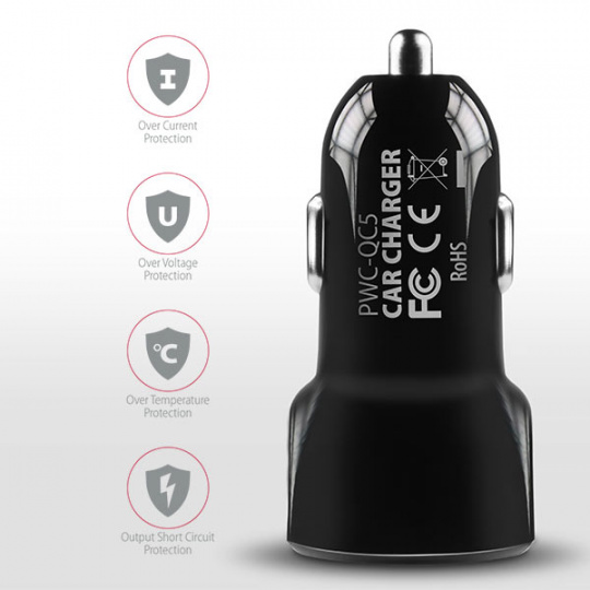 • QC - rychlonabíjení zařízení s podporou Qualcomm Quick Charge 2.0 a Quick Charge 3.0.