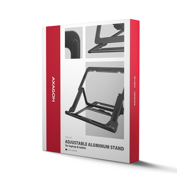 AXAGON STND-LAB, hliníkový stojan pro notebooky 10"-17.3", nastavitelná výška, černý