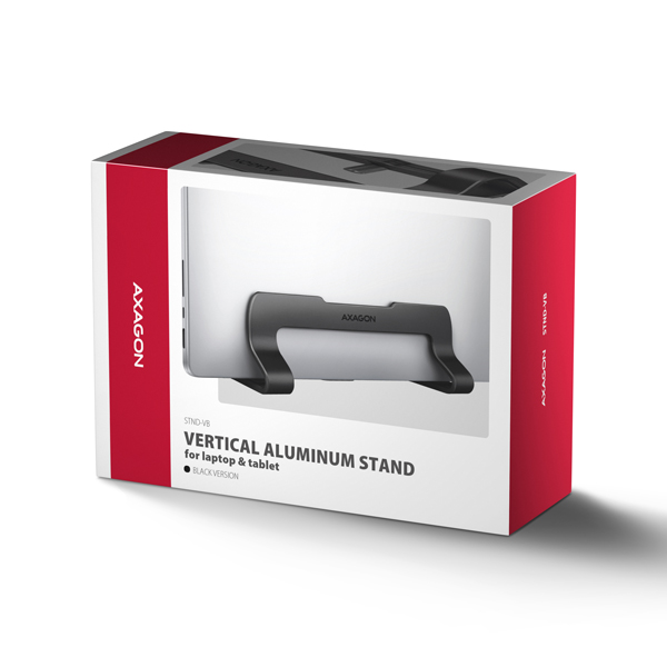 AXAGON STND-VB, vertikální hliníkový stojan pro notebooky 10"-17.3, nastavitelný rozestup, černý
