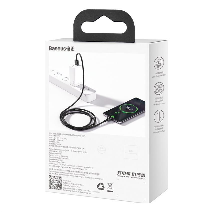 Baseus Superior Series rychlonabíjecí kabel USB/Type-C 66W 1m černá