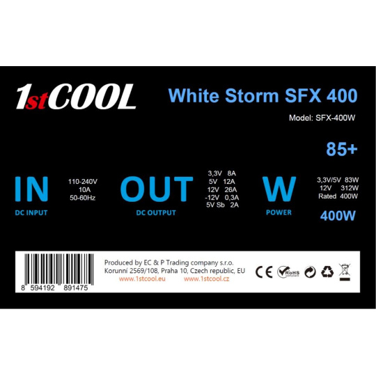 BAZAR - 1stCOOL Zdroj White Storm SFX 400 85+, 400W, SFX, černá - Po opravě