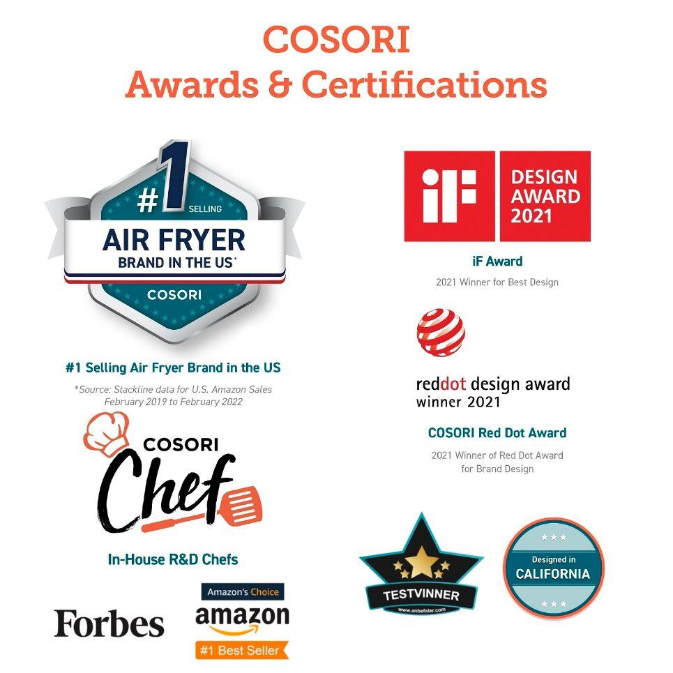 Cosori je nejprodávanější značka horkovzdušných fritéz v USA a je držitelem mnoha prestižních ocenění. Cosori je značka, které můžete důvěřovat.