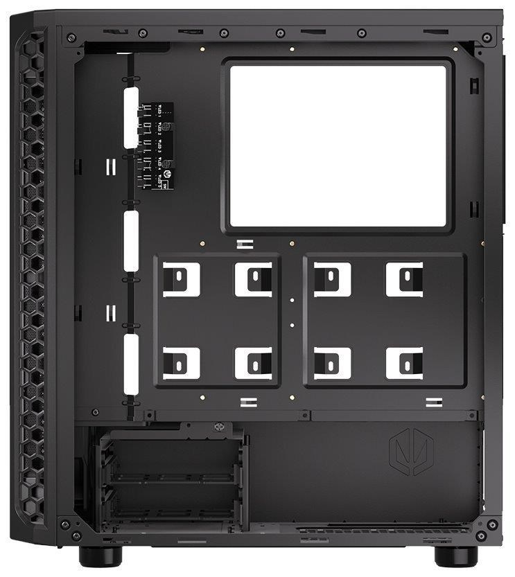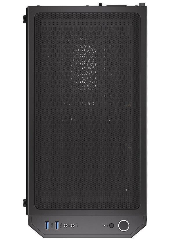 Skříň formátu Middle Tower s průhlednou bočnicí z tvrzeného skla nabízí dvě 2,5" pozice pro SSD disky a dvě 3,5" pozice pro pevné disky. Na horní části se nachází dva USB 3.0 porty, sluchátkový výstup a audio vstup pro mikrofon. Vybavena je čtyřmi 120 mm ventilátory s ARGB podsvícením, které spolu s perforovaným čelním panelem zajišťují dostatečné proudění vzduchu. Důmyslné řešení umožňuje pohodlné umístění až 360 mm dlouhého výměníku vodního chlazení na přední straně. Ve skříni je dostatek prostoru pro chladič CPU do výšky až 161 mm a grafickou kartu o délce až 350 mm. Dodávána je bez zdroje. Součástí je také sada prachových filtrů.