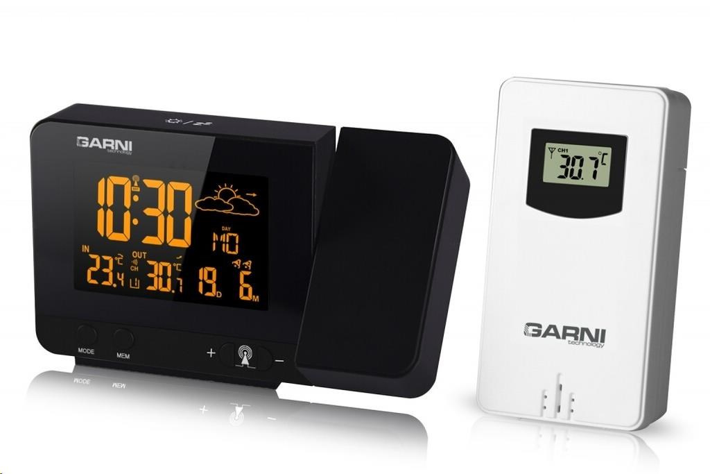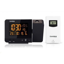 Meteorologická stanice se špičkovým inverzním barevným VA displejem s časem řízeným rádiovým signálem DCF-77, budíkem, měřením vnitřní teploty, bezdrátovým čidlem pro měření vnější teploty a projekcí času a vnitřní / venkovní teploty inverzní barevný VA displej o rozměrech 63 x 42 mm s možností stálého osvětlení při napájení síťovým adaptérem, nebo krátkodobým osvětlením na 15 s při napájení bateriemi 3 stupně jasu osvětlení displeje, možnost vypnutí osvětlení displeje s možností krátkodobého osvětlení na 15 s (při napájení síťovým adaptérem) lze nastavit až 70 barev displeje, nebo režim automatického plynulého střídání barev možnost rychlé volby 8 barev osvětlení displeje velikost číslic na displeji – čas 22 mm, datum, vnitřní a vnější teplota 10 mm, zkratka názvu dne 7 mm čas a datum řízené signálem DCF-77 s možností manuálního nastavení ikona příjmu signálu DCF-77 zkratka názvu dne 12ti, nebo 24 hodinový formát zobrazení času možnost nastavení časového pásma od -1 do +2 hodin budík s 2 budícími časy s funkcí opakovaného buzení (Snooze) po 5 minutách budící signál - 20 sekund 1 pípnutí za sekundu, 20 sekund 2 pípnutí za sekundu, 20 sekund 4 pípnutí za sekundu a poté stálé pípání střídavá projekce času a vnitřní a vnější teploty (teploty se střídají co 5 s) s možností otočení obrazu o 180°, možnost sklopení tubusu projektoru o 90° dopředu a dozadu barva projekce červená stálá projekce při napájení síťovým adaptérem s možností vypnutí 6 animovaných ikon předpovědi počasí (slunečno, polojasno, oblačno, srážky, silný déšť a sněžení) na základě sledování barometrického tlaku vestavěným barometrickým čidlem možnost nastavení výchozí ikony předpovědi počasí zobrazení hodnot vnitřní a vnější teploty paměť na maximální a minimální naměřené hodnoty teploty s automatickým mazáním v 0:00 hodin šipky tendence vývoje barometrického tlaku, vnitřní a vnější teploty indikace námrazy vnější teploty v rozsahu od -1°C do +3°C ikonou na displeji zobrazení teploty ve °C, nebo °F možnost použití až 3 bezdrátových čidel GARNI 029 (jedno čidlo GARNI 029 je součástí dodávky) bezdrátový přenos hodnot vnější teploty na frekvenci 433 MHz ikona příjmu signálu bezdrátového čidla USB port pro nabíjení mobilních zařízení (pouze při napájení hlavní jednotky síťovým adaptérem), maximální nabíjecí proud 1 000 mA ikony slabých baterií napájení síťovým adaptérem, nebo bateriemi možnost postavení barva černá Bezdrátové čidlo GARNI 029 vlhkosti odolné displej o rozměrech xxxxxx mm velikost číslic na displeji: teplota xxxxxx mm měření teploty 3 kanály maximální RF výkon 10 dBm (10 mW) možnost postavení a zavěšení barva bílá Obsah balení: 1 x hlavní jednotka GARNI 365 Arcus 1 x bezdrátové čidlo GARNI 029 1 x síťový adaptér český, slovenský, německý, anglický, italský, polský a maďarský návod.