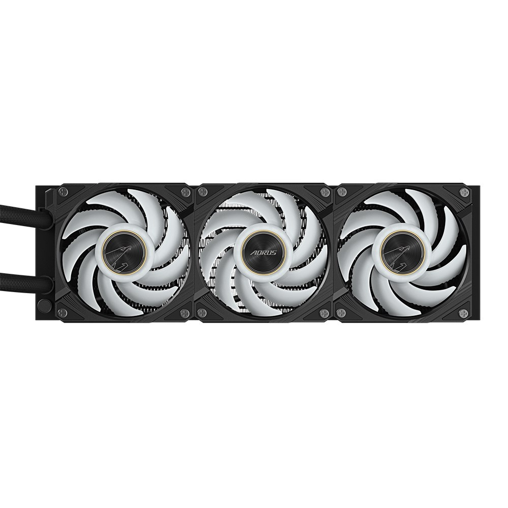 - Vodní blok a ventilátor mají gradientní osvětlení a osvětlení ventilátoru ARGB lze synchronizovat s ostatními zařízeními AORUS prostřednictvím GCC (GIGABYTE Control Center).