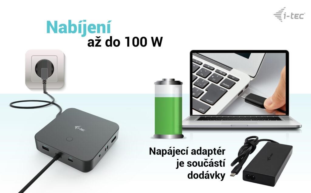 BAZAR - i-tec USB-C HDMI + Dual DP Docking Station + PD 100 W + Universal Charger 112 W - Po opravě (Náhradní krabice)