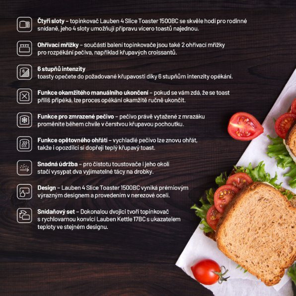 Lauben 4 Slice Toaster 1500BC  – Pro dokonalou rodinou snídani