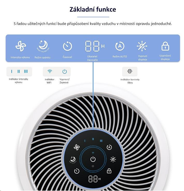 - Odstraňuje až 99,97 znečištěných částic vzduchu