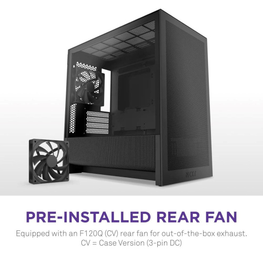 - Předinstalovaný zadní ventilátor: Obsahuje jeden zadní ventilátor F120Q (CV), který zajišťuje efektivní proudění výfukového vzduchu ihned po vybalení z krabice. CV = verze pro skříň (3-pin DC)