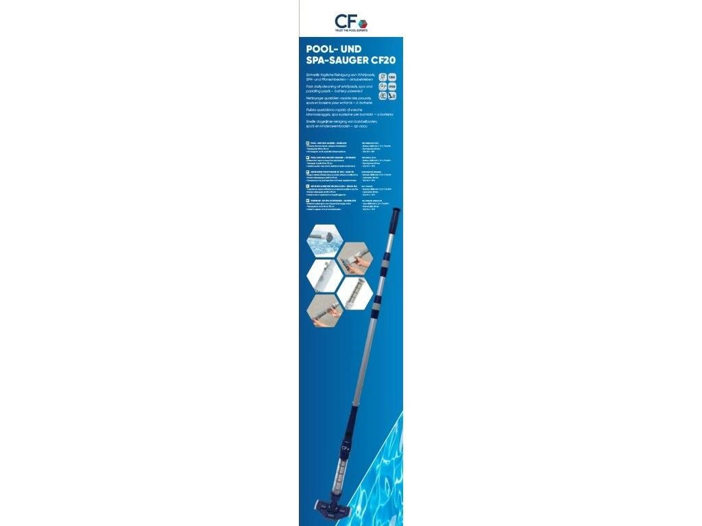 Ruční bazénový vysavač CF 20 AKU je praktickým pomocníkem pro každého, kdo chce udržovat svůj bazén nebo vířivku čisté bez zbytečné námahy a bez kabelů. Díky bezdrátovému provedení a automatickému spuštění při ponoření do vody je jeho použití maximálně pohodlné a intuitivní.