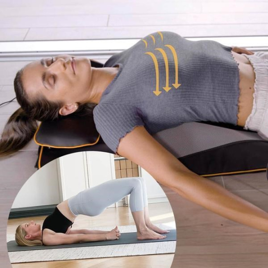 Masážní podložka nabízí cvičení a strečink inspirovaný jógou zaměřený na ramena, záda a krk, a to úplně bez námahy. Toto příjemné, intenzivní natahování vede k hlubokému uvolnění a pocitu pohody, jaký jste ještě nikdy nezažili.