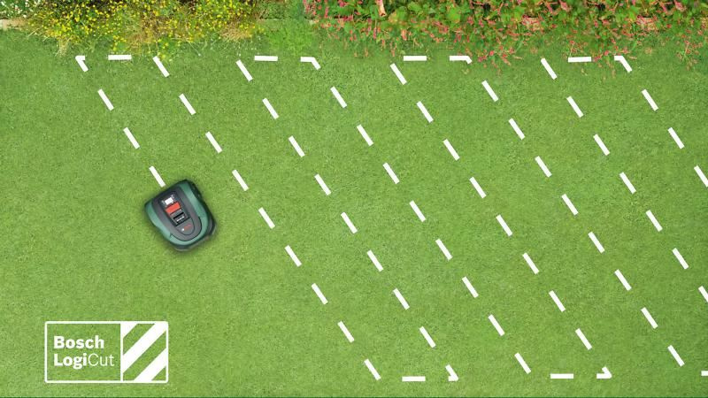 Indego S+ 500 s funkcí LogiCut mapuje trávník a řeže v efektivních rovnoběžných pruzích, a vy tak máte trávník k dispozici dříve.