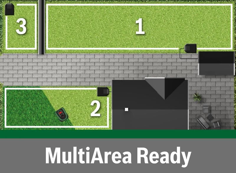 Díky funkci MultiArea si sekačka Indego může do paměti uložit až tři travní plochy (do celkové rozlohy 500 m2).