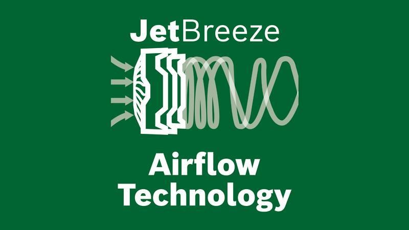 Silný proud vzduchu, dlouhá doba chodu a nízká hlučnost s technologií Bosch JetBreeze Airflow