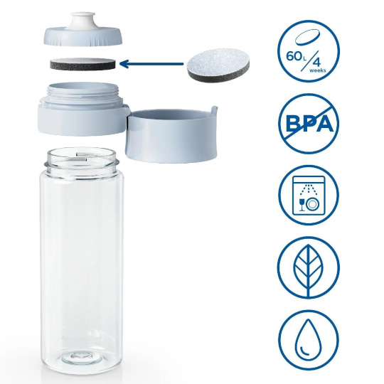 Stylová filtrační láhev Brita Fill & Go Vital vyrobená z odolného transparentního tritanu bez obsahu BPA a je navržena tak, abyste mohli mít filtrovanou vodu stále sebou i na cestách. Spojuje v sobě kompaktní rozměry, prvotřídní design a nejmodernější technologie filtrace vody od předního německého výrobce vodních filtrů s tradicí delší než 50 let. Láhev je vybavena uhlíkovým filtrem, který je vyrobený ze skořápek z kokosových ořechů a při pití efektivně filtruje vodu, kterou pijete.