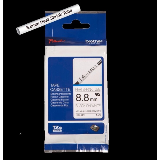 Originální tepelně smršťovací trubička Brother HSe-221 o šířce 8.8 mm je určena speciálně pro trvalé značení a identifikaci kabelů a vodičů. Při smršťovacím poměru 2:1 se doporučuje použití HSe-221 s černým tiskem na bílém podkladu pro kabely o průměru od 2,6 mm do 5,1 mm. Kompatibilní s tiskárnami štítků P-touch, které mají logo HS nebo HSe na krytu kazety s páskou..