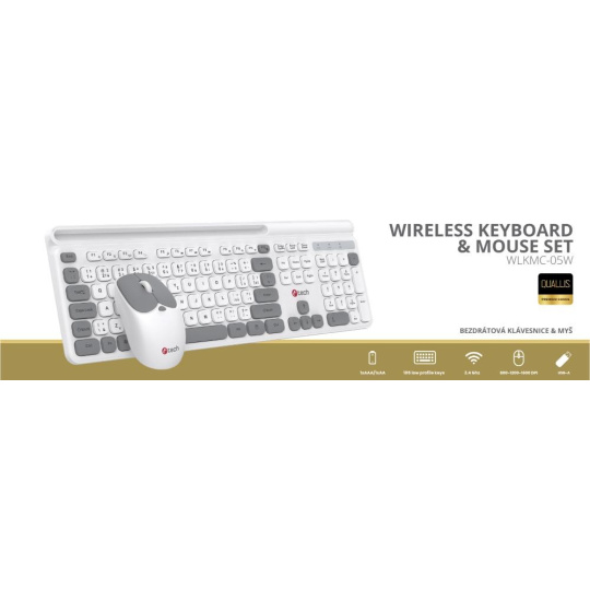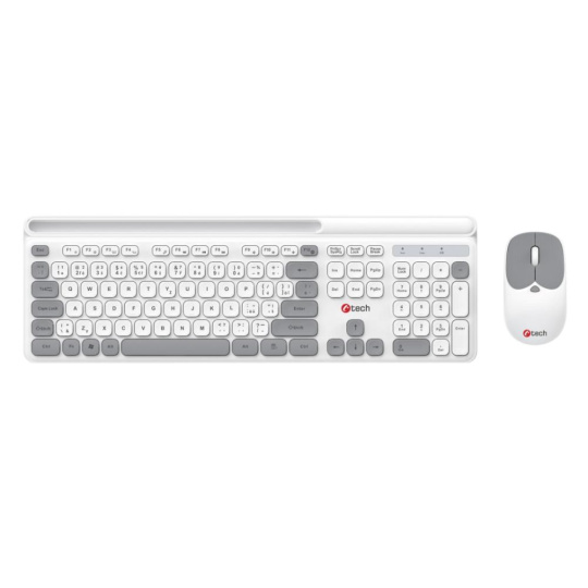 C-TECH klávesnice s myší WLKMC-05W, Bezdrátový set 2.4GHz, CZ, Bílá