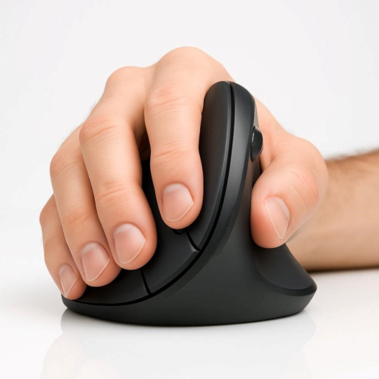 C-TECH VEM-12 je moderní bezdrátová vertikální myš navržená s důrazem na ergonomii, funkčnost a maximální pohodlí při každodenním používání. Je ideální volbou pro uživatele, kteří tráví dlouhé hodiny u počítače a chtějí předejít bolestem zápěstí či syndromu karpálního tunelu. Vertikální konstrukce přirozeně kopíruje polohu ruky v odpočinku, čímž výrazně snižuje napětí ve svalech a podporuje zdravější držení. Tvarované opěrky pro palec a prsty zajišťují jistý úchop bez zbytečného zatěžování zápěstí.