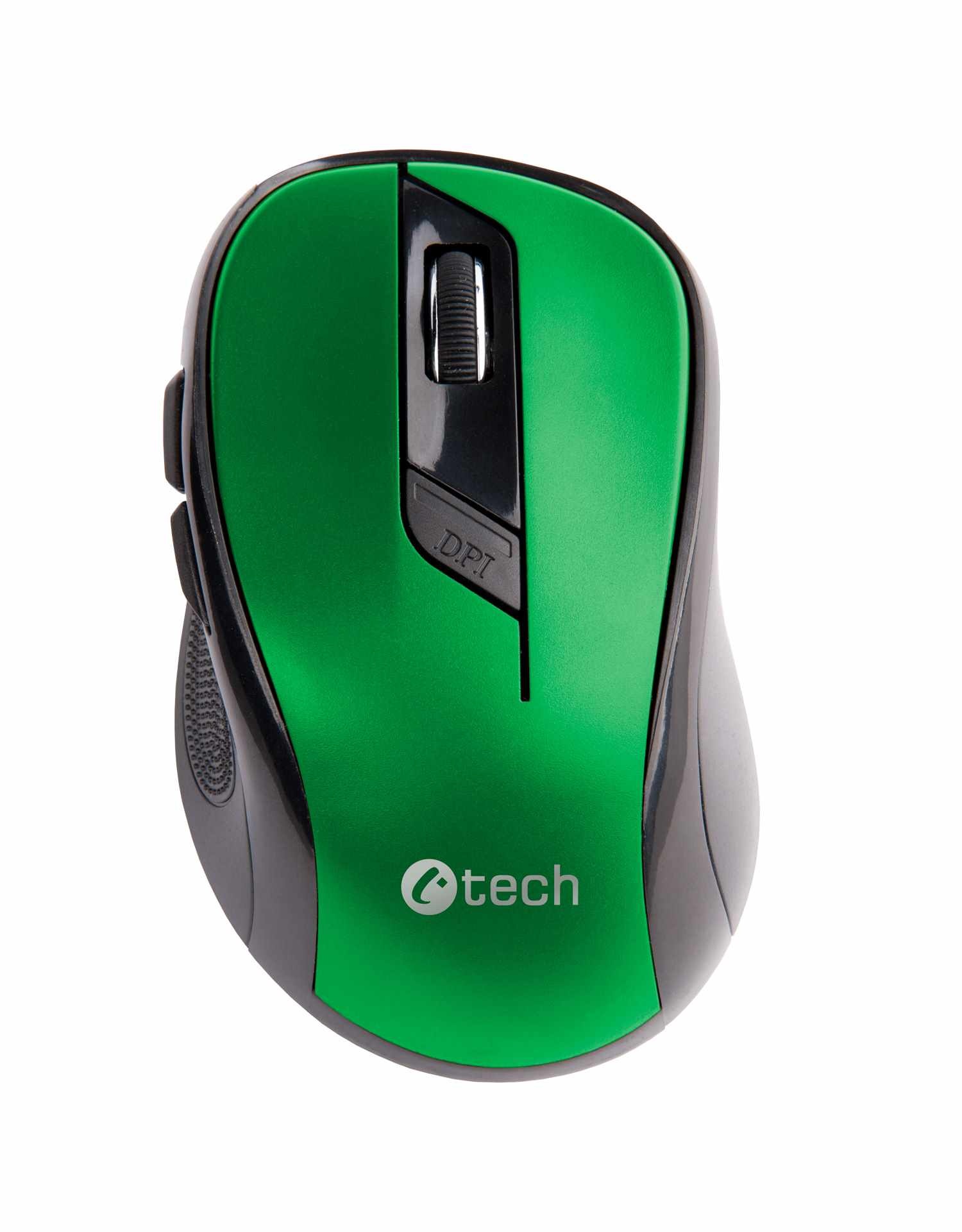 C-TECH myš WLM-02, černo-zelená, bezdrátová, 1600DPI, 6 tlačítek, USB nano receiver