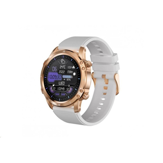 Moderní outdoorové fitness chytré hodinky Carneo ADVENTURE HR+ druhé generace v elegantní zlatorůžové barvě mají kulatý barevný displej SUPER AMOLED chráněný extrémně tvrdým sklem Gorilla. Umožňují měřit srdeční tep, stres, BMI, ujetou vzdálenost, sledovat spálené kalorie nebo kvalitu spánku. Obsahují 380mAh baterii s výdrží až 5 dní. Podle certifikace IP67 jsou odolné proti vodě a prachu. Jsou kompatibilní s operačními systémy iOS a Android. Hodinky mají na dotek příjemný silikonový řemínek v černé barvě, který lze vyměnit za řemínek v jiné barvě nebo kožený či kovový a změnit tak sportovní vzhled hodinek za manažerský. Vkusný outdoorově-luxusní design lze snadno kombinovat s oblekem nebo volnočasovým oblečením. Hodinky i aplikace jsou kompletně v češtině, takže si s nimi určitě dobře porozumíte.