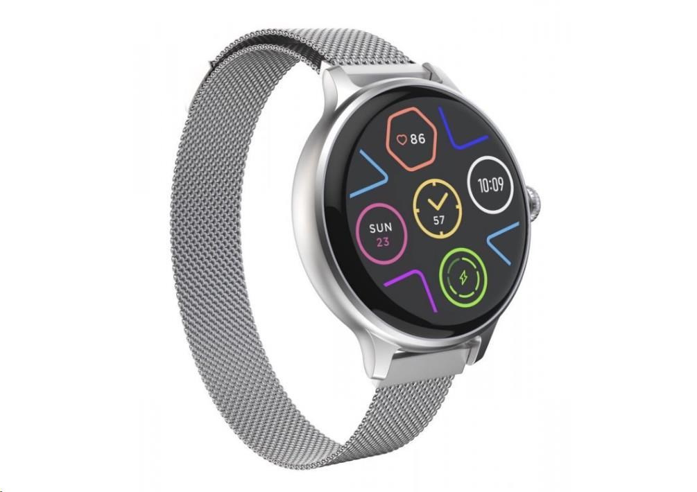 Luxusní fitness hodinky CARNEO HERO mini HR+ s Milánským, kovovým řemínkem s barevným Super HD AMOLED displejem. Monitorují vaši denní aktivitu, výšku stresu a lze je spárovat s mobilním telefonem, díky čemuž Vás upozorní na příchozí hovor či SMS. Jejich dokonalé, minimalistické kovové tělo s jednoduchými křivkami je tak návykové, že je nebudete chtít po prvním nošení sundat z ruky. Hodinky Vám umožňují vyřídit telefonický hovor přes zabudovaný mikrofon a reproduktor, pokud budete v dosahu spárovaného telefonu (vzdálenost až 10 metrů).