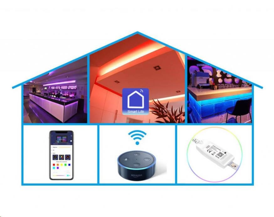 LED pás Carneo Smartlight RGBW Wifi je 5m dlouhý flexibilní samolepící pás, osazený celkem 240ks LED diod s plnobarevným světelným spektrem RGB a teplým bílým světlem. Barvu a intenzitu světla si můžete regulovat buď pomocí mobilní aplikace SmartLife nebo pomocí systémů inteligentního ovládání domácnosti Amazon Alexa nebo Google Home. Aplikace je kompatibilní se zařízeními Android ve verzi 4.0 a vyšší a také se zařízeními iOS ve verzi 8.1 a vyšší. Led pás se ovládá pomocí technologie WIFI, proto je třeba jej připojit do vaší domácí Wifi sítě.