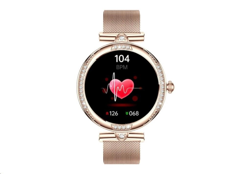 Luxusní dámské fitness hodinky CARNEO Seinna HR+ stříbrné jsou skutečný klenot na ruce každé ženy. Kovové tělo osazené broušenými kameny přitáhne pohledy všech. S barevným SUPER AMOLED displejem monitorují vaši denní aktivitu a lze je spárovat s mobilním telefonem, díky čemuž můžete vyřídit telefonický hovor přímo ze zápěstí, nebo vás upozorní na příchozí hovor, SMS nebo zprávu z aplikací.
