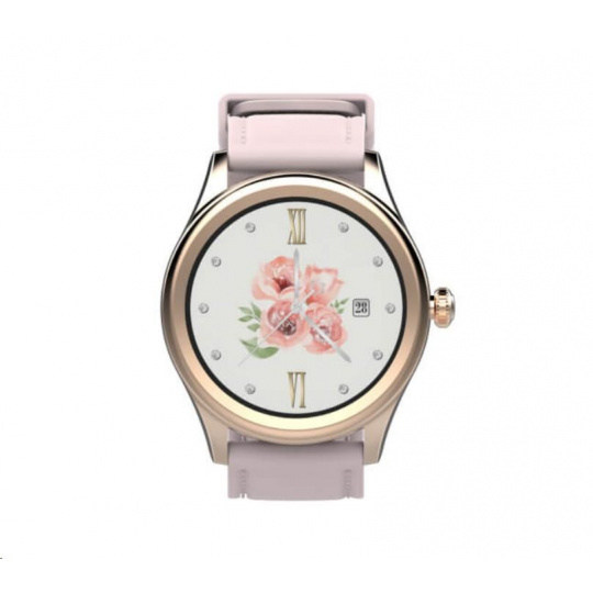 Smart hodinky Carneo Prime GTR v elegantním zlatém provedení, barevným dotykovým displejem lze aktivovat jednoduchým otočením ruky. Kromě běžných "smart" funkcí disponují i fitness sportovními funkcemi a to vše v elegantním business look provedení. Rosegold silikonový řemínek v designu koženého pásku s prošíváním umocňuje jejich eleganci.