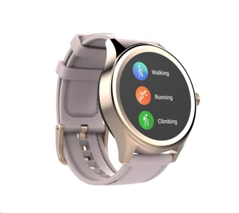 Smart hodinky Carneo Prime GTR v elegantním zlatém provedení, barevným dotykovým displejem lze aktivovat jednoduchým otočením ruky. Kromě běžných "smart" funkcí disponují i fitness sportovními funkcemi a to vše v elegantním business look provedení. Rosegold silikonový řemínek v designu koženého pásku s prošíváním umocňuje jejich eleganci.