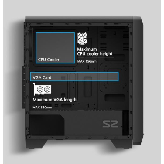| Maximum CPU cooler height | 156 mm |