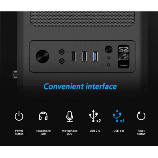 case Zalman miditower S2, ATX/mATX/Mini-ITX, bez zdroje, USB3.0, černá
