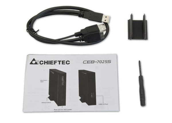 Scope of Delivery: 1x CEB-7025S, USB3.0 Data cable, stand, HDD Installation Guide