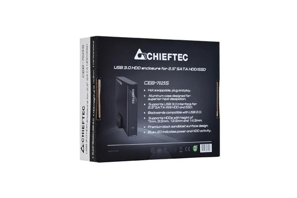 CHIEFTEC externí rámeček na SATA HDD 2,5" (max. 14.5mm), USB3.0, aluminium