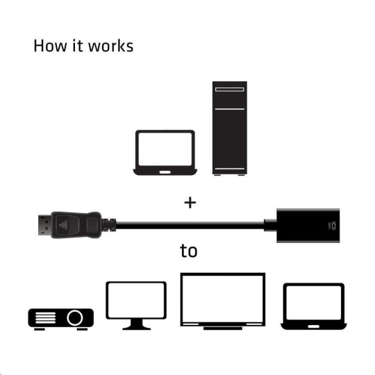 Club3D CAC-1080 je aktivní převodník signálu DisplayPort ™ 1.4 to HDMI ™ 2.0b. Podporuje funkci HDR video. To umožní přehrávat vysoce kvalitní mediální obsah. Přijímač DisplayPort ™ podporuje až 5,4 Gb/s na jednu trasu (celkem obsahující 4 trasy). Výstup HDMI ™ je plně kompatibilní se specifikací HDMI ™ verze 2.0b. Převodník je kompatibilní se staršími verzemi Displayport ™ a HDMI ™, to však může ovlivnit funkčnost a / nebo podporované funkce, například HDR.