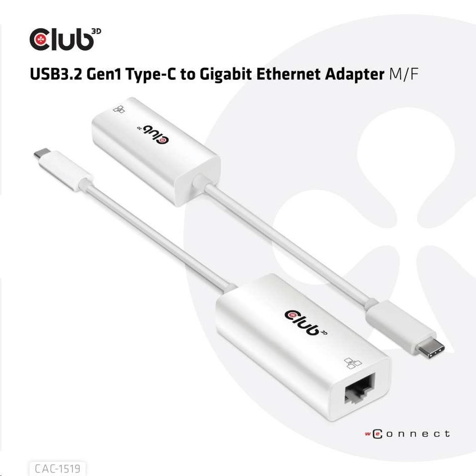 The Club 3D CAC-1519 is a USB3.2 GEN1 Type-C to Gigabit Ethernet Adapter. It enables your new MacBook Pro, ChromeBook or other USB-C supported host PC to get access to a fast Ethernet network by connecting the Gigabit Ethernet port. The Ethernet adapter is compact and highly portable. Powered by the USB C port, the adapter requires no external power and is ideal for use with notebooks and Ultrabooks.