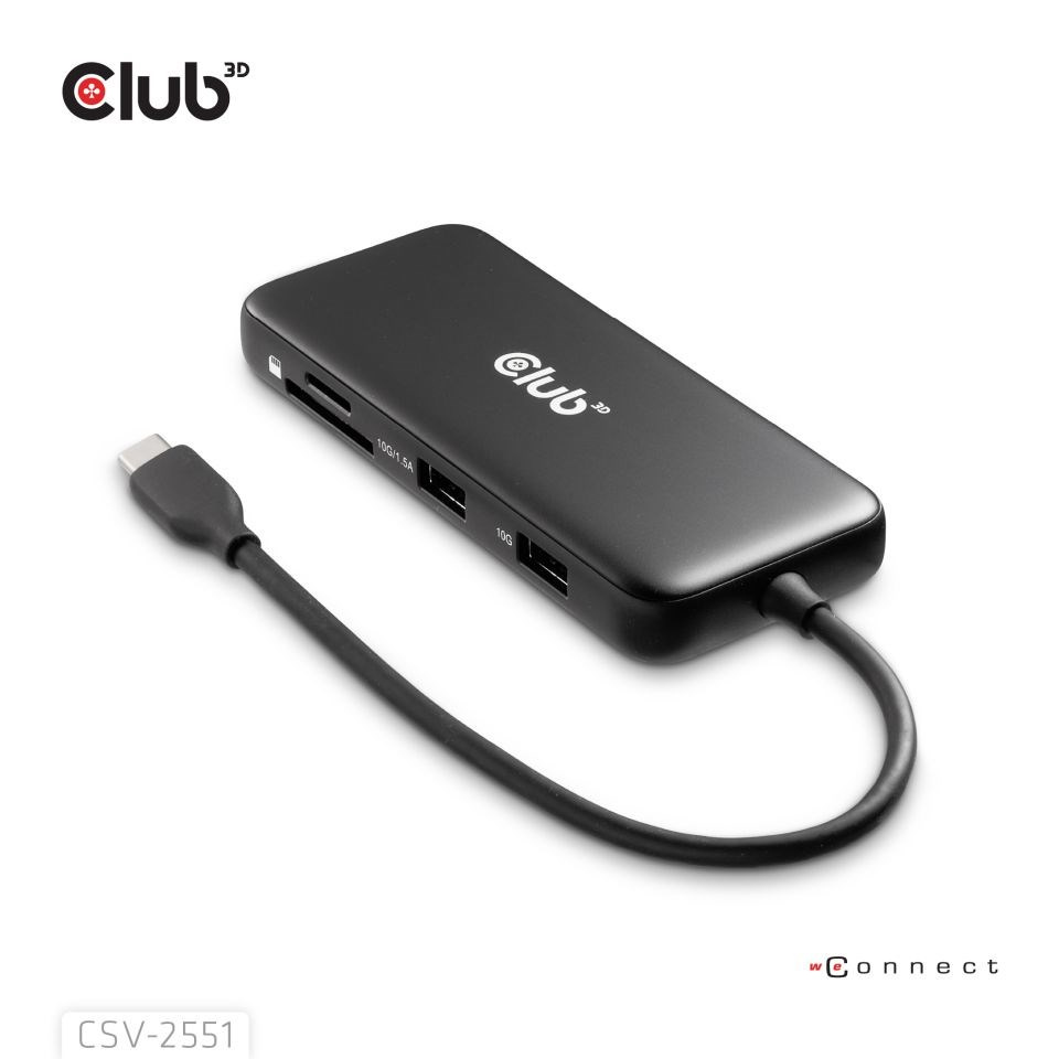 Club3D Dokovací stanice USB-C 8v1, 1xHDMI, 1xDP, 1xUSB-C, 2xUSB, 1xRJ45, černá