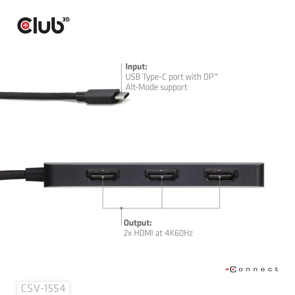CSV-1554 je rozbočovač MST pro HDMI™.Tento rozbočovač USB-C MST je navržen tak, aby vyhovoval vašim nejvšestrannějším požadavkům na připojení, jako je mobilní telefon, tablet, notebook atd. s výstupem USB-C, který podporuje režim DP™ Alt-Mode jako hostitel pro 3 porty HDMI s podporou ultra vysokého rozlišení. Podporuje DP2.1 AltMode a umožní vám výstup jednoho displeje s maximální kapacitou jednoho 8K30Hz nebo dvou displejů s podporou 8K30Hz + 4K144Hz nebo trojitých displejů, každý s frekvencí 4K60Hz. Podporuje všechna zařízení kompatibilní s rozhraním USB-C nebo Thunderbolt4 s podporou alternativního režimu DisplayPort.