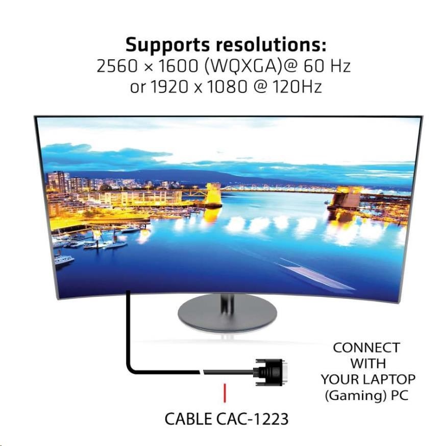 The Club 3D CAC-1223 is a DVI-D(24+1) Male to DVI-D(24+1) Male Cable. This cable is fully Bidirectional. This CAC-1223 Cable is the easiest solution for connecting your DVI-D Monitor, Projector or Television to the DVI-D output of your PC / Notebook / Game Console.
