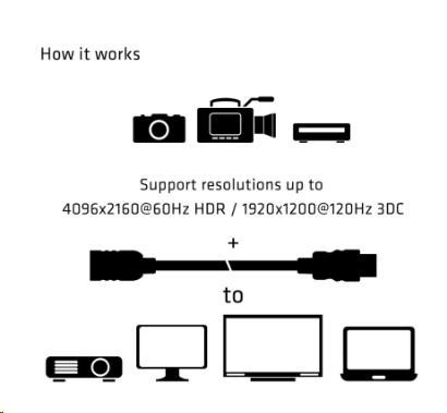 | • High Quality High speed HDMI™ Extension cable, 26 AWG. • Compliant with HDMI™ 1.3 / 1.4 / 2.0 standard • Data transfer rate up to 18 Gbps. • Support resolutions up to 4096x2160@60Hz HDR / 1920x1200@120Hz 3D. * • Product is fully plug & play and does not require external power. * Functionality is also dependent on the HDMI™ M/M cable used. In combination with this CAC-1325 extension cable we advise to use HDMI Male/Male cable of 28AWG Quality, like the Club 3D CAC-1371/CAC-1372 and/or CAC-1373 |