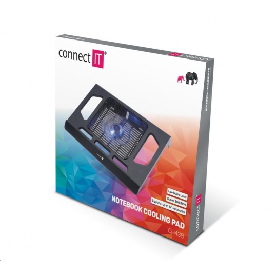 Chladící podložka pod notebook Breeze   Technické specifikace:  VENTILÁTOR: Průměr ventilátoru: 13cm s LED modrým podsvícením Rychlost: 900 + -10% (RPM)  Hlučnost: 23 dBA  Průtok vzduchu: 42 CFM  Napájení: Port USB (5V DC)  Spotřeba: 1.75W     DESIGN: Barva: černá  Materiál: plast + kov  Kompatibilita: až 17" notebooky Rozměry: (Š x V x H) 295 * 350 * 50mm Hmotnost: 380 g.