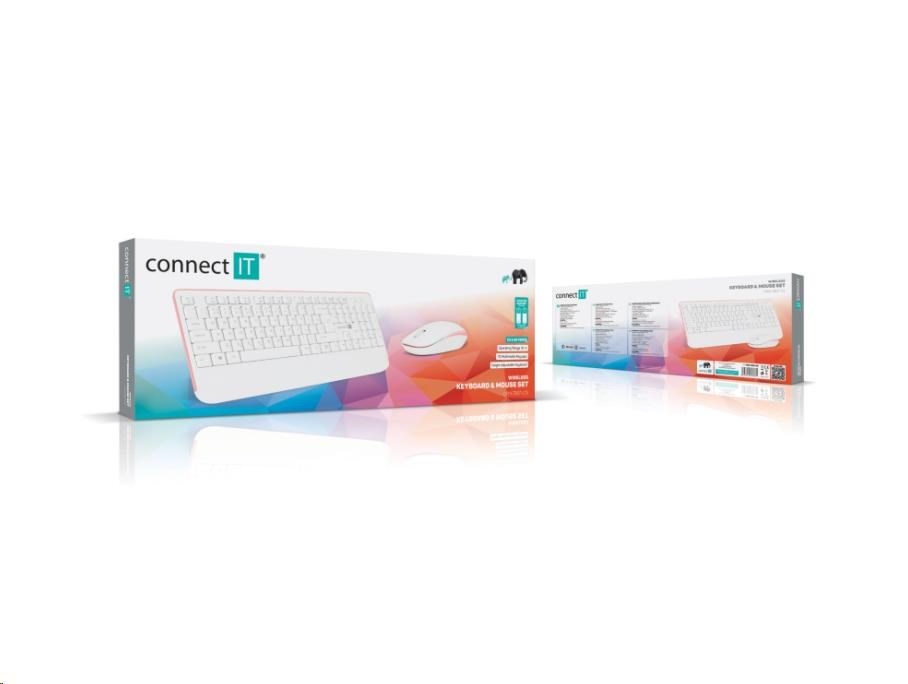 CONNECT IT Combo bezdrátová bílo-růžová klávesnice + myš, (+1x AAA +1x AA baterie zdarma), CZ + SK layout