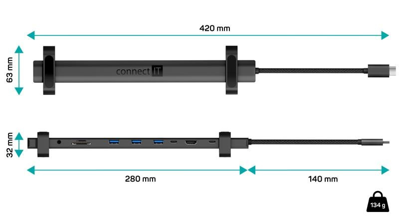 CONNECT IT Dokovací stanice USB-C 10v1, 1xHDMI, 2xUSB-C, 3xUSB, 1xRJ45, černá