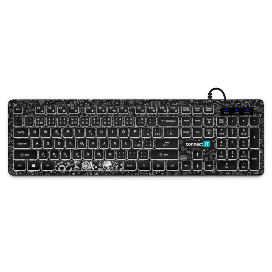 CONNECT IT DOODLE kancelářská drátová bíle podsvícená USB klávesnice, CZ + SK verze, ČERNÁ
