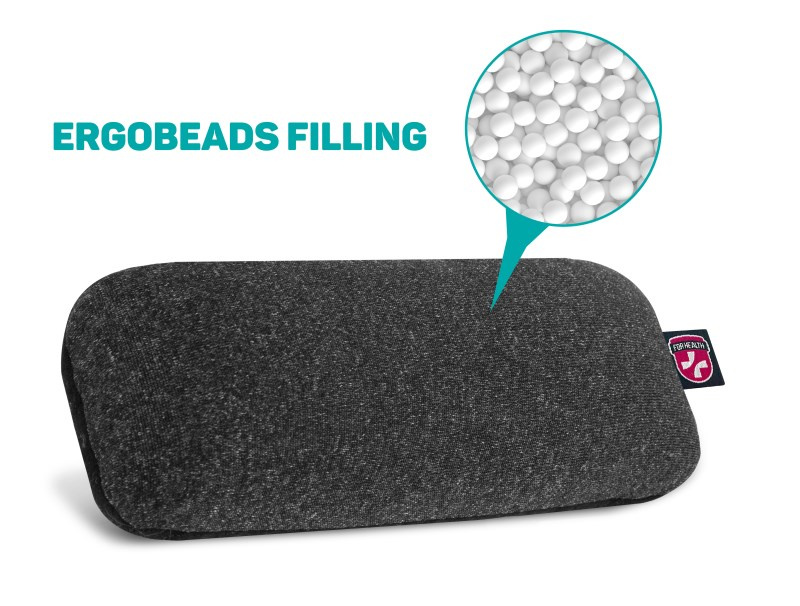 Zápěstní opěrka před myš plněná kuličkami ErgoBeads, díky kterým se opěrka vytvaruje a přizpůsobí každému zápěstí a zajistí tak celodenní komfort při práci na PC.