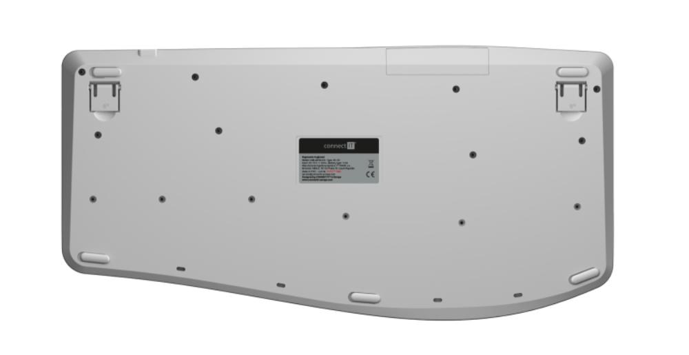 Klávesnice kromě klasických funkcí disponuje 12 multimediálními a funkčními klávesami, které se obzvláště hodí do kancelářského prostředí. Příjemný ergonomický náklon klávesnice pomáhá proti únavě zápěstí během dlouhých pracovních relacích. Samozřejmostí je jeden nano přijímač, který má dosah až 10 metrů. V balení je dodáváná originál CONNECT IT alkalická baterie (1x AA).