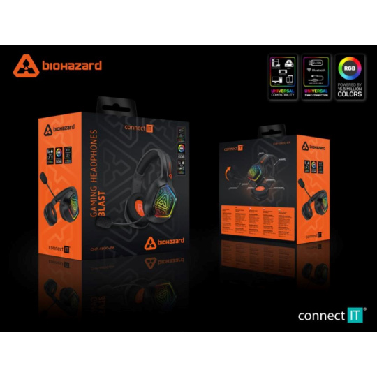 CONNECT IT Herní sluchátka s mikrofonem BIOHAZARD Blast, Bezdrátové RF 2.4GHz a Bluetooth, černá