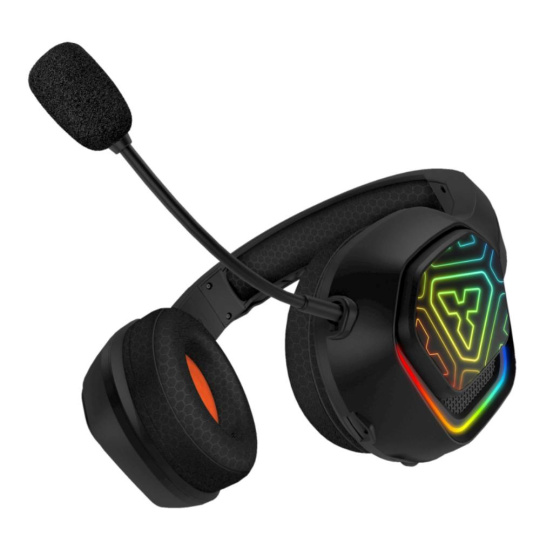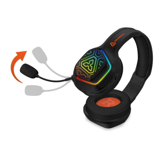 Profesionální herní bezdrátová sluchátka s připojením 2.4GHz a BT "Biohazard Wireless" s odnímatelným mikrofonem a RGB Rainbow podsvícením pro hráče počítačových her.