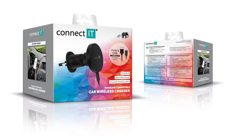 CONNECT IT InCarz MagSafe univerzální magnetická bezdrátová nabíječka do auta, černá