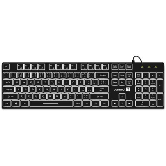 CONNECT IT kancelářská podsvícená klávesnice Chocolate WhiteStar, CZ + SK verze, černá